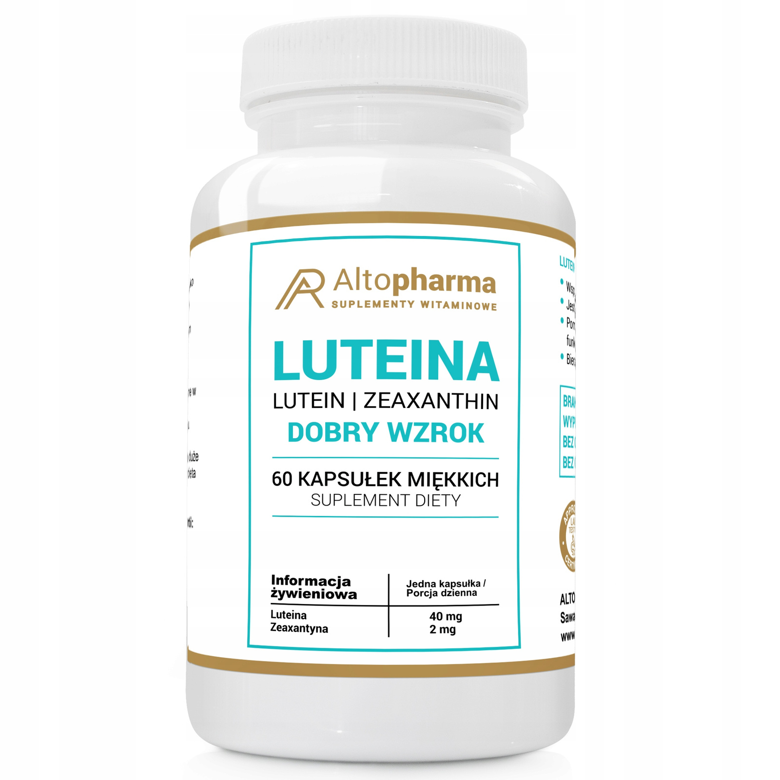 ALTO PHARMA – LUTEINA 40 mg + ZEAKSANTYNA 2 mg – DOBRY WZROK – 60 kapsułek miękkich