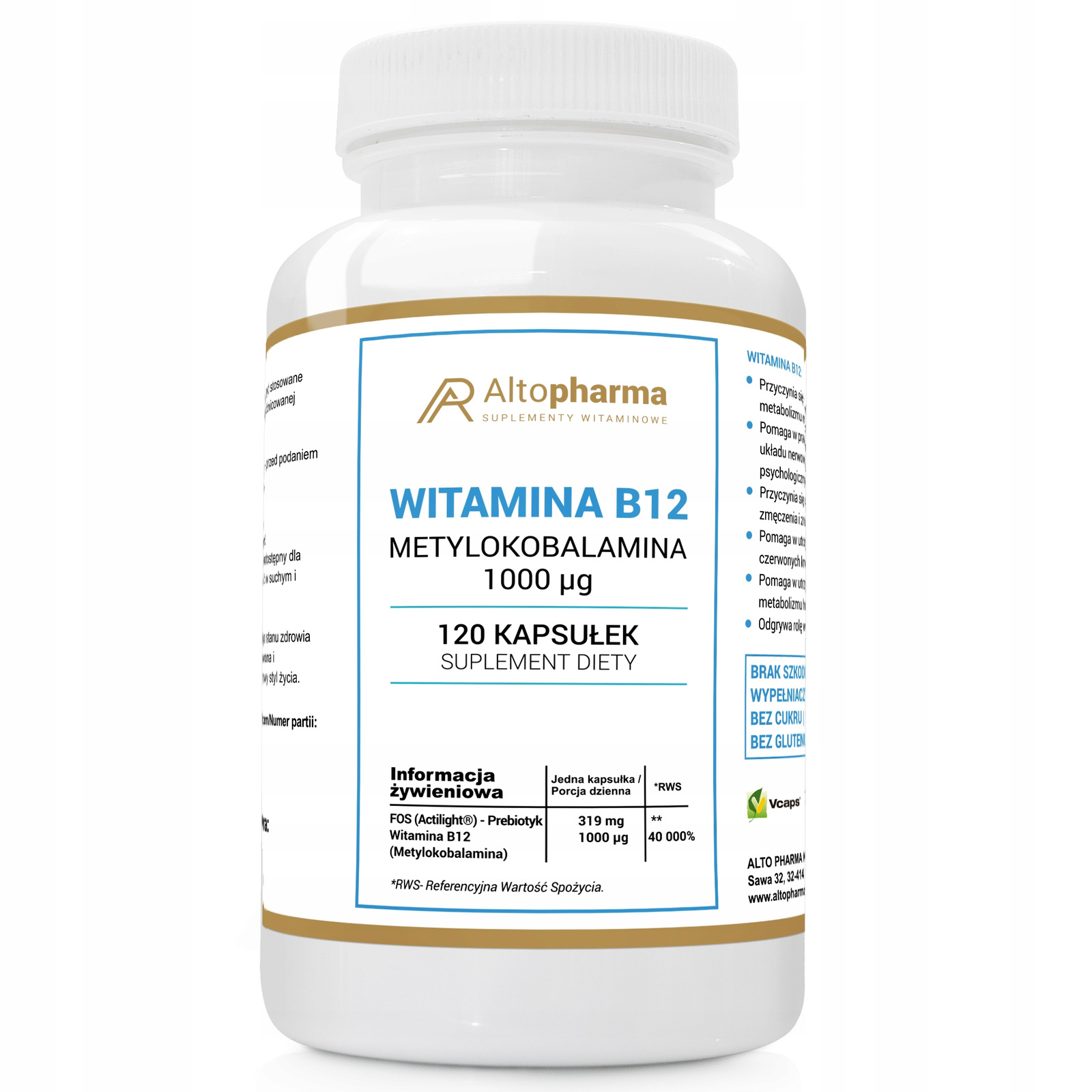 ALTO PHARMA WITAMINA B12 METYLOKOBALAMINA 1000 mcg 120 kapsułek